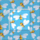 Niedliche fliegende Hummel / Honigbienen fliegen Kunststoffe. Whimsikale Wiederholmuster Stoff in den Tönen Blau, Gelb und Braun. Ideal für Kinderzimmer- oder Kinderinsekten oder Naturschutzräume. Einzigartig in Aquarellfarbe bemalt und von Sarah Trett entworfen.