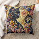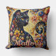 Whimsical Floral Black Cat Kitty Personalisiert Kissen