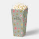 Whimsical Blumen Popcorn Stil Gefälligkeitskästen mit handgemalten Blume in erdig braun, koral, rosa und gelb. Originelle Kunst von Leslie Larson.