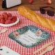 Whimsical Floral Salmon Blue Green Wedding Pappteller