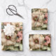 Wrapping paper sheets with a cute image. Blue. pink and cream colored flowers with green leaves. Set inside a green flower pot with a green plaid cloth hanging over the side.