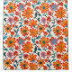 Duschvorhang mit einer Illustration von skurrilen Blume in Vintagen Folk Art Farbe Blau, Rosa, Gelb und Orange geben von einem Retro-boho-Ambiente.