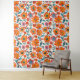 Tapestry mit einer Illustration von skurrilen Blume in Vintagen Folklorefarben blau, rosa, gelb und orange, die ein Retro-boho-Ambiente abgeben.
