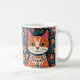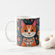 Whimsical Folk Art Cat und Blume Kaffeetasse