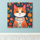 Whimsical Folk Art Cat und Blume Leinwanddruck