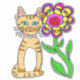 Whimsical Folk Art Cat und farbenfrohe Blume Aufkleber .