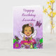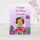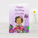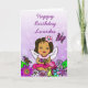 Eine hübsche afroamerikanische, hispanische, hawaiianische, Latino Girl Fee und whimsical Folk sind Blume und Schmetterlinge Karte für ein kleines Mädchen. Personalisieren Sie es, indem Sie den Namen des Kindes in den personalisierten Bereich. Rosa, lila, gelb, aquamarin, und alle anderen schönen hellen fröhlichen Farben.