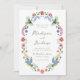 Celebrate your wedding day with enchanting watercolor elegance using this whimsical folk art floral wedding invitation. The design features the couple’s first names displayed in soft green handwritten script at the center, creating a romantic and personal focal point. A graceful oval frame of hand-painted folk art florals, delicate greenery, and charming watercolor birds surrounds the text, showcasing colorful botanical details in shades of blue, pink, golden yellow, and green. The birds add a storybook-inspired touch that enhances the design’s whimsical and artistic character while maintaining a refined, timeless feel. Perfect for garden weddings, outdoor ceremonies, and couples drawn to artistic watercolor wedding stationery, this invitation offers a distinctive and memorable way to share your special day with family and friends.