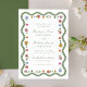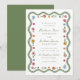 Delight guests with the artistic charm of this Whimsical Folk Art Floral wedding invitation, featuring a graceful scalloped border of watercolor greenery accented with colorful folk art florals and decorative dots. The couple’s names and wedding details are displayed at the center in green handwritten script paired with classic serif lettering, creating a beautiful balance of personality and timeless elegance. Stylized blooms in shades of red, pink, golden yellow, blue, and ivory are thoughtfully arranged throughout the frame, adding warmth, movement, and a storybook-inspired feel. Perfect for garden weddings, outdoor ceremonies, and couples drawn to unique illustrated stationery, this invitation offers a distinctive and memorable way to share your special day.