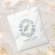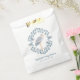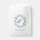 Eine whimsical Gefälligkeitstasche ist mit einem grauen Storch umgeben von einem blauen rosmalisierenden inspirierten Rahmen auf blauem Hintergrund. Der Storch hat ein volkstümliches Design auf seinem Flügel in Marine, grau, rot und orange. Unter dem Design ist ein Ort, um Ihre Gefallen Taschen mit einem Namen und Datum anpassen.