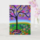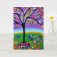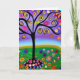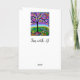 Leere Karte.. Farbenfrohe skurrile Kunstwerke. Baum in Gelb, Weiß, Blau und Lila Blumen und Blätter. Die künstlerische Intelligenz erzeugte Kunst.