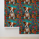 Whimsical Folk Art Welpe Hund und Blume Tapete