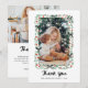 This simple and stylish family or couples Christmas thank you card features your favorite photo, surrounded by a whimsical hand-drawn frame with red and green foliage and holly berries, and trendy black bows. Elegant modern script says "Thank You." There is room for a second photo on the back, along with a personal message to family and friends. This card is a great way to send your appreciation and thanks for all the gifts you received this holiday season!