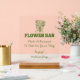 Erstellen Sie einen schönen, interaktiven Moment auf Ihrer Feier mit unserem Acryl-Schild "Sage Green Flower Bar", das Gäste mit Charme und mühelosem Stil führt. Perfekt für eine "Fresh off the Market"-Bridal-Shower, Hochzeiten und garteninspirierte Veranstaltungen, verleiht dieses Schild Ihrer Blumenstation einen gepflegten und dennoch wunderbar verspielten Touch. Das Schild zeigt den einladenden Satz "Make a bouquet to take on your way", elegant dargestellt für eine einfache Lesbarkeit und zeitlosen Charme. Sein sauberes, modernes Design passt wunderbar zu frischen Blumen, Grünzeug und marktstiliger Dekoration und ist somit eine natürliche Ergänzung für eine Blumenbar oder Bouquet-Tisch. Ideal für Indoor- oder Outdoor-Feiern, hilft dieses Acryl-Schild dabei, die Stimmung zu setzen und Gäste dazu zu ermutigen, eine handlungsaktive, unvergessliche Erfahrung zu genießen