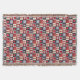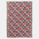 Whimsical Gingham Christmas Quilt Design in Blues und Rot und aus Weiß - Niedliche Weihnachtsbäume, Schmuck und Schneeflocken mit niedlichen Knöpfen und mit Gingham und Polka Punkte als Hintergrund für die Plätze. Ein beliebtes Weihnachtsdesign für Bauernfamilien und Landhäuser. KEINE echten Knöpfe oder Quiltstoffe sind auf diesem Produkt, es ist künstlerisch kreiert, um wie ein Stepptuch auszusehen.