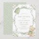 Whimsical green bow with ribbons and bows form a vintage frame for this lovely baby shower ivitation. Vintage teddy bear and green baby bib overalls accent the corners with white hydrangeas mixed with greens in each corner. A perfect invitation for a perfect event. Gender neutral style. 100% customer satisfaction at Zazzle every day.