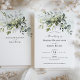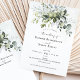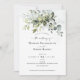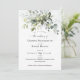 Rufen Sie die Verzauberung der Natur auf Ihrem Hochzeitstag mit dieser Whimsical Greenery Script Hochzeitseinladung. Das Design präsentiert eine harmonische Mischung aus coolem Salbei, Eukalyptus und silberner Vegetation mit dezenten weißen Blumen und sanften Gelbtönen. Auf der Rückseite befindet sich ein schlankes Skript, das die Informationen über die Hochzeit detailliert beschreibt und von derselben natürlichen Eleganz umgeben ist. Die Vorder- und Rückseite spiegeln einen raffinierten und gleichzeitig skurrilen Charme wider, der auf hochwertigem Papier gedruckt wurde, das dem ätherischen Design einen besonderen Luxus verleiht. Ideal für das Paar, das klassische Eleganz mit der Frische des großen Freien verbinden möchte.