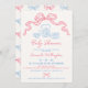 Whimsical Hand Drawn Tea Bow Baby Shower Einladung Sweet whimsical geschlechtsneutrale Baby Dusche in blau und rosa mit einem großen Bogen, Teekessel und Teebecher. Diese handgezeichnete illustrierte Babydusche weist auch ein Muster auf der Rückseite in Rosa und Blau auf.