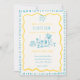 Diese trendige handgezeichnete illustrierte Hochzeitseinladung enthält ein Drehbug- und Abendtischelement. Das skurrile und sonderbare Design beinhaltet handgeschriebenen Schriftart und Festdoodles. Helle blaue und gelbe Farben für klassische, aber moderne Hochzeitsfeste.