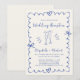 Whimsical Hand Drawn Blue Cream Hochzeitsempfang Einladung