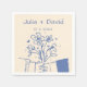 Whimsical Hand Drawn Blue Floral Wedding Serviette
