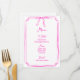 Diese elegante, handgeschriebene Menüvorlage zeichnet sich durch ein klassisches, handgezeichnet Design aus, das oben mit einer skurrilen Bogen-Abbildung versehen ist. Es ist in einem lustigen rosa-weißen Farbschema präsentiert, ideal um den Ton für eine einzigartige und weibliche Feier zu setzen.