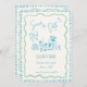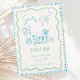 Diese trendige handgezeichnete Stil illustrierte Hochzeit speichern Sie das Datum Einladung mit einem Drehbogen-und Abendtisch Elemente. Das skurrile und sonderbare Design beinhaltet handgeschriebenen Schriftart und Festdoodles. Blauer und schlauer grüner Stil für klassische und moderne Hochzeit stationär.