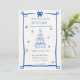 Diese trendige, handgezeichnete illustrierte Hochzeitseinladung besticht durch einen knackigen Bogen und einen Champagnerturm. Das skurrile und sonderbare Design beinhaltet handgeschriebenen Schriftart und Festdoodles. Mediterraner Blau-Weiß-Stil für klassische und moderne Hochzeitsfeste.