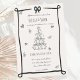 Diese trendige, handgezeichnete illustrierte Hochzeitseinladung besticht durch einen knackigen Bogen und einen Champagnerturm. Das skurrile und sonderbare Design beinhaltet handgeschriebenen Schriftart und Festdoodles. Schwarz-Weiß-Stil für klassisch und modern Hochzeitsfest.