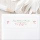 Whimsical Hand Drawn Red Bow Weihnachtsschild mit Ihrer Adresse in grünem handgeschriebenem Schriftart und Adresse in roter Serif Schriftart