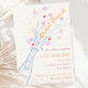 Diese trendige handgezeichnete illustrierte Brautbrunch-Einladung mit einer knackigen Champagnerflasche, die Blume und Konfetti knackt. Das skurrile und sonderbare Design beinhaltet handgeschriebenen Schriftart und Festdoodles. Pastellfarben mit staubblauen Farbtönen für eine unterhaltsame und moderne Hochzeitssammlung.