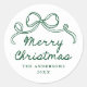 Whimsical Hand-Drawn Green Bow Merry Christmas Runder Aufkleber