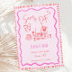 Diese trendige handgezeichnete Stil illustrierte Hochzeit speichern Sie das Datum Einladung mit einem Drehbogen-und Abendtisch Elemente. Das skurrile und sonderbare Design beinhaltet handgeschriebenen Schriftart und Festdoodles. Rosa und rote Farben für klassische, aber moderne Hochzeitsfeste.