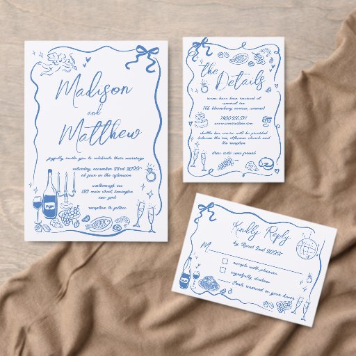 Linea - Fun Quirky Hand Drawn Doodles WeddingDesignt von The Happy Cat Studio