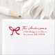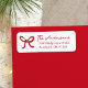 Fügen Sie Ihrer Urlaubspost einen fröhlichen Akzent mit diesen Rücksendeadressen-Aufklebern, die einen handgezeichnet roten Bogen und eine passende rote Schrift auf weißem Hintergrund aufweisen. Ihr Familienname wird in elegantem, handgeschriebenem Skript mit Ihrer unten abgebildeten Rücksendeadresse angezeigt und schafft so ein personalisiertes Aussehen, das sich wunderbar mit Weihnachtskarten, Urlaubseinladungen und saisonaler Korrespondenz verbindet.