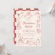 Rote, skurrile handgezeichnete Einladung mit klassischen Weihnachtsartikeln, um Ihre Party zu begeistern.