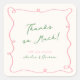 Whimsical Hand gezogen Rosa & Grün Vielen Dank Quadratischer Aufkleber