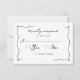 Whimsical handgeschriebene Hochzeitskarte RSVP mit minimalistisch handgezeichnet Squiggle-Rahmen-Design und zwei Vögel mit Kirschen auf der Rückseite. Diese RSVP-Karten sind in Schwarz, Weiß und Rot gehalten.