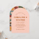 Feiern Sie Ihren besonderen Tag mit dieser einzigartigen Retro-inspirierten Hochzeitseinladung, die mit einer gewölbten Gewölbeform und einem himmlischen Boho-Muster aus Sonnen, Sternen und Blume aufwartet. Diese individuell gestaltbare Einladung verbindet zeitlosen Charme mit künstlerischen Details und eignet sich ideal für moderne, Vintage oder Outdoor-Hochzeiten. Fügen Sie Namen, Datum und Veranstaltungsort hinzu, um einen personalisierten Sake zu erstellen, den Ihre Gäste Liebe.