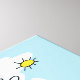 Eine niedliche Illustration einer glücklichen, blauen Engelsfee. Über den grünen Hügeln und Bäumen mit einer hellen Sonne im Hintergrund. Whimsical und fröhlich. Schönes Design für ein Kinder Schlafzimmer oder Kinderzimmer.