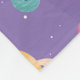 Whimsical-Muster zeigt im Kawaii-Stil glückliche lächelnde Planeten auf lila galaxischen Hintergrund