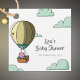 Eine personalisierte Babydusche mit Anhängern, die einen rosa Teddybär in einem Heißluftballon darstellen, der wegschwebt. Personalisieren Sie den Text mit Ihrem eigenen. Illustriert und entworfen von Patricia Alvarez.