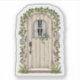 Mit diesem bezaubernden Aufkleber mit einer rustikalen Holztür, die mit zarten Spitzen-Vorhängen geschmückt ist und von blühenden Weinreben umgeben ist, verleihen Sie Ihrem Zimmer einen besonderen Charme. Ideal für Naturliebhaber, Träumer und Cottecessfans.