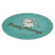 Whimsical Urlaub Schneide Board bietet Eis Skaten Snowman mit braunem und rosa Schal und Mütze auf aqua Hintergrund und anpassbaren Text.