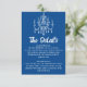 Diese wunderschöne Hochzeitsinfo-Umschließkarte ist mit einer handgezeichnet Kronleuchter-Illustration und handgeschriebener Typografie im perfekten Blau ausgestattet. Der Look ist handgemacht und macht Spaß, aber dennoch romantisch und elegant! Benutzen Sie diese Karte für Informationen über Unterkünfte, Reisen, etc. Weitere Informationen finden Sie in der Auflistung.