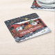 Whimsical Jolly Gnomes Musical Express Square Paper Untersetzer. Zwei Gnome fahren mit dem Weihnachtszug, Geschenke, die um sie herum hochgekocht sind. Sie schnüren sich abschüssige Carols, tauschen Texte gegen Kochrezepte aus, während andere Passagiere lachen und sich dem fröhlichen, stimmungsvollen Chaos anschließen.