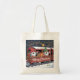 Whimsical Jolly Gnomes Musical Express Tote Bag. Zwei Gnome fahren mit dem Weihnachtszug, Geschenke, die um sie herum hochgekocht sind. Sie schnüren sich abschüssige Carols, tauschen Texte gegen Kochrezepte aus, während andere Passagiere lachen und sich dem fröhlichen, stimmungsvollen Chaos anschließen.