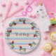 Farbenfrohe Einhorn und zarter Hintergrund mit Streifen. Um Ihrem Party eine gute Stimmung und Stil hinzuzufügen. Einfach Ihren eigenen Text hinzufügen.