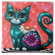 Whimsical Kitty Cat Sitzen auf Rug Floral Aquamarin