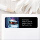 Ein wunderschöner nächtlicher Blick auf ein rustikales Set in der Holzhütte.